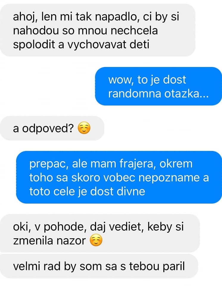 Najzvláštnejšie screenshot konverzácie (Príbehy zo života ľudí #233)Dnes vymeníme komenty za konverzácie, ale rozhodne to bude stáť za to! Photo by Roman Pohorecki Pokračovanie na ďalšej stránke!↓ ↓ ↓ Počet videní: 3 416Stránka 1 z 3Späť123Ďalej Ďalej